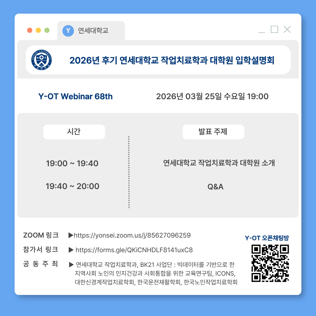 주제: 2026년 후기 연세대학교 작업치료학과 대학원 입학설명회